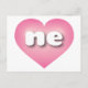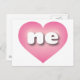 Esta tarjeta presenta un corazón rosado con un centro lavado de blanco que contiene letras negrita, redondeadas, blancas bajas fundas ne, una versión juguetona de la abreviatura de Nebraska, el estado de la cascarilla. La tarjeta está en blanco en espera de tu texto personalizado o sentimientos manuscritos.