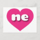 Esta postal tiene un vibrante corazón rosado caliente que contiene las letras fundas negrita, blanca, redondeadas, ne, una abreviatura juguetona para Nebraska, el estado de la cascarilla. El reverso de la postal está en blanco, esperando el texto personalizado o los sentimientos manuscritos.