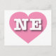 Esta postal tiene un vibrante corazón rosado que contiene las letras negrita, blanca y alta del funda NE, la abreviatura oficial de Nebraska, el estado de la cascarilla. El reverso de la postal está en blanco, esperando el texto personalizado o los sentimientos manuscritos.