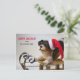 Sus clientes apreciarán que se les recuerde cuando reciban esta linda tarjeta postal de Navidad. La parte delantera presenta una imagen de un cachorro lindo que lleva un sombrero de Santa rojo y blanco y va montado en un trineo. El texto en rojo en la parte delantera se puede cambiar a lo que desee, al igual que los campos de texto adicionales en la parte posterior. Una forma económica y considerada de anunciar su clínica veterinaria o negocio de cuidado de mascotas enviando buenos deseos a sus clientes.