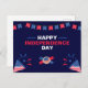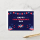 Celebra el 4 de julio con esta vibrante postal. Con un atrevido texto de "Feliz Día de la Independencia" contra un fondo de la marina, adornado con conglomerados festivos y confeti patriótico, esta postal es perfecta para compartir tu espíritu festivo. El diseño frontal incluye elementos dinámicos rojos, blancos y azules, lo que lo convierte en una elección sorprendente para los saludos del Día de la Independencia. La parte posterior de la postal ofrece texto personalizable, lo que le permite añadir su propio mensaje especial para amigos y familiares.
