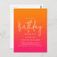 ¡Celebra tu cumpleaños con un estilo atrevido y hermoso! Esta invitación de cumpleaños personalizado impresa en una postal hace exactamente eso con sus colores brillantes y atrevidos de naranja y gris rosa caliente mezclados con texto moderno blanco y un acento de escritura manuscrita que deletrea la palabra "cumpleaños" en un estilo fabuloso. Los colores se asemejan a un amanecer y a los albores de una nueva era. Estas invitaciones pueden solicitarse en formatos digitales impresos y de descarga instantánea.
