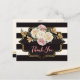 Postal Negro atrevido, rayas marfil, flores Gracias