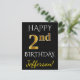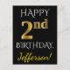 Postal Negro, Faux Gold Segundo cumpleaños + Nombre perso