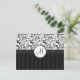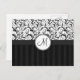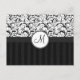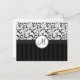 Patrón floral digital sin fisuras de color blanco y negro sobre la parte superior, y rayas de satén negras antiguas en la parte inferior, con una cubierta de cinta y un sello de texto monograma de personalizable.