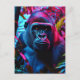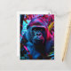 Representación digital de un gran gorila macho en una selva tropical con iluminación estilizada de neón.
