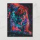 jaguar resaltado por los rastros de luz de neón color turquesa morado, creando una escena cósmica y cautivadora.