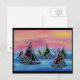Pintura gráfica de veleros de color neón sobre las olas del océano al amanecer.