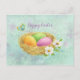 Esta hermosa postal con huevos de Pascua coloreados en un nido de pájaro trae la belleza de la primavera a las vacaciones. Una manera maravillosa de desear a todos una "Pascua feliz". Diseño original y obra de Audrey Ascenzo. Frente: Feliz Pascua