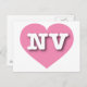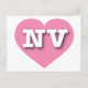 Esta postal contiene un corazón rosado que contiene las letras negrita, blanca, superior funda NV, la abreviatura oficial para Nevada, el estado plateado. El reverso de la postal está en blanco, esperando el texto personalizado o los sentimientos manuscritos.