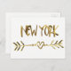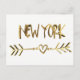 New York Love USA American City Elegant Heart con Arrow Gold Look Typography en la postal de fondo blanco