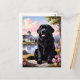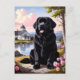 Send a touch of countryside charm with this beautiful Newfoundland postcard. Featuring a black Newfoundland dog sitting beside a peaceful lake with a picturesque cottage, colourful wildflowers, and mountain scenery in the background, this Newfoundland postcard perfectly captures the calm and loyal spirit of the breed. Ideal for sending greetings, collecting, or framing as a keepsake, this Newfoundland postcard is a wonderful choice for dog lovers and especially those who adore the Newfoundland dog.