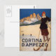 Cortina d'Ampezzo Viaje Vintage Postcard Esquí Nieve Cortina d'Ampezzo Viaje Poster Mujer en esquí con pistas de esquí y montañas en el fondo. Dolomitas Italia Ski Winter Sport Snow Foto de dominio público Wikipedia