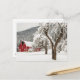 Postal Nieve fresca en granero rojo