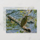 Fotografía de un ave inmadura de garza nocturna parado en un tronco en un río. Se pueden ver otras ramas y troncos flotando y sumergidos en el agua. Las plantas acuáticas sobresalen del agua, y las hojas de los árboles enmarcan la escena. Las ondas en el agua muestran el movimiento del río. Derechos reservados ©2021 Kimberly J Tilley.