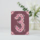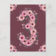 Hermoso tercer cumpleaños número tres grande decorado con hermosas flores rosadas de acuarela y follaje verde. Regalo de cumpleaños número 3 para tu niña para una tarjeta postal única y muy especial.