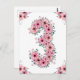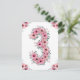 Hermoso cumpleaños número tres decorado con hermosas flores rosadas y follaje verde de acuarela. Regalo de cumpleaños para tu niña para una postal única y muy especial.