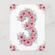 Postal Niña Cumple 3 Años Flores Rosadas y Follaje Verde