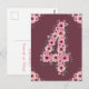 Postal Niña Cumple 4 años Flores Rosadas Follaje Verde