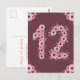 Hermoso cumpleaños número doce decorado con hermosas flores rosadas y follaje verde en acuarela. Gran regalo de cumpleaños número 12 para tu niña para una postal única y muy especial.