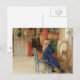 Imagen colorida de un niño con un vestido azul sentado en una rueda giratoria. Pintura familiar del artista sueco Carl Larsson