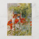 Cachorros creciendo en el patio delantero con una niña parada en medio. Vintage Carl Larsson acuarela.