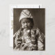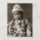 Retrato vintage de un niño indio Wishham, sentado, con una canasta como gorra, vestido de manta de algodón y cuentas de concha decoradas con dólares de plata. Foto c1910 de Edward S. Curtis, LOC.