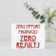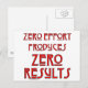 Produce Resultados Cero. Es un hecho simple. La mejor manera de no hacer nada es nunca empezar. Este es un recordatorio impresionante para cualquier objetivo motivacional...ventas, pérdida de peso, aptitud, educación.