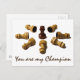 Un peón de ajedrez marrón flanqueado por siete peones tenedores de color blanco amarillento. Victoria de Ninja sobre los enemigos. Imagen transparente aislada. Texto Eres mi Campeón. Puede cambiar o eliminar el texto.