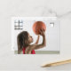 Postal Niño apuntando a un disparo con un baloncesto en u