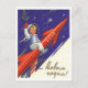 Postal Niño con cohete rojo, cosecha soviética de Año Nue