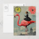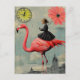 La IA generó arte digital de un chica que sostiene una gran flor rosa que monta un flamenco rosa gigante en un estilo de collage mixto con un reloj y un edificio