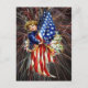 Postal Niño Patriótico Antiguo y Fuegos Artificiales Mode