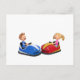 ¡Niño personalizado y chica en coches parachoques en un parque de diversiones listo para divertirse!