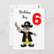 Niño de 6 años vestido con traje de pirata, el color de fondo y el texto son personalizables. ¡Personalízalo!