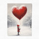Postal Niño sosteniendo corazón de globo, Escena Invernal