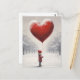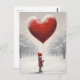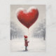 Esta hermosa escena invernal de un niño sosteniendo un globo rojo gigante en forma de corazón es la forma perfecta de expresar tu gratitud, mostrar tu amor o desear a tus amigos unas felices fiestas. El blanco intenso de la nieve y el rojo vibrante del globo crean un contraste impresionante, y la imagen seguramente hará sonreír a cualquiera que la vea.