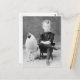 Postal Niño vintage fumando sentado al lado de un pollo