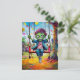 Postal Niño Zombie Sonriente en Columpio con Banderas de