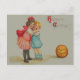 Postal Niños asustados sonriendo calabaza con linterna Ja