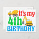 Postal Niños Cumpleaños 4 Años Niño Vehículo de Construcc