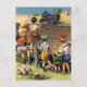 Postal Niños de la época saludando a granjeros locales en