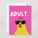 ¿Quién dijo que la edad adulta tenía que ser seria? Este pollo confiado con gafas de sol sabe más. Ya sea que estés celebrando el cumpleaños de alguien, un trabajo, graduación, o simplemente necesitas reírte de la absurdidad de ser un "adulto", esta tarjeta postal hilarante trae la dosis perfecta de humor. Ideal para amigos que fingen tenerlo todo bajo control — o ni siquiera lo intentan.
