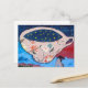 Postal con detalles de un mural con una taza llena de estrellas.