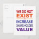 No existe para aumentar el valor del accionista mensaje activista en una postal. Derechos reservados © Sandy Long, todos los derechos reservados. Este diseño está en otros artículos divertidos en mi tienda de activismo de arte. Envíe un mensaje a sus senadores y a su representante y díganles que no existimos para que las corporaciones lo exploten. Exigen que aumenten el salario mínimo a un salario vital. También necesitamos cambiar las leyes bajo las que operan las corporaciones, de manera que tengan una responsabilidad fiduciaria con la comunidad y el medio ambiente, así como con sus empleados y luego sus accionistas.