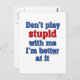 No juegues estúpido conmigo, soy mejor en eso - Funny una cola. Vea este tonto dicho sobre productos y prendas de vestir.
