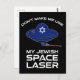 No me hagas usar mi láser espacial judío. Burlarse de las teorías conspiratorias republicanas sobre los judíos con este diseño de parodia política. ¡Genial para los aficionados al OVNI y para los amantes de la ciencia ficción! Presenta un platillo volador de ciencia ficción con una estrella de David disparando un rayo láser en el espacio exterior.
