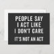"La gente dice que actúo como si no me importara. No es un acto", cita graciosa.