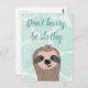 Feliz pereza apareciendo para decir "no te des prisa, sé perezoso"
