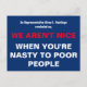 Texto: Como dijo Cummings, "No somos amables cuando eres desagradable con los pobres". Texto patriótico rojo y blanco sobre fondo azul. La resistencia funciona.